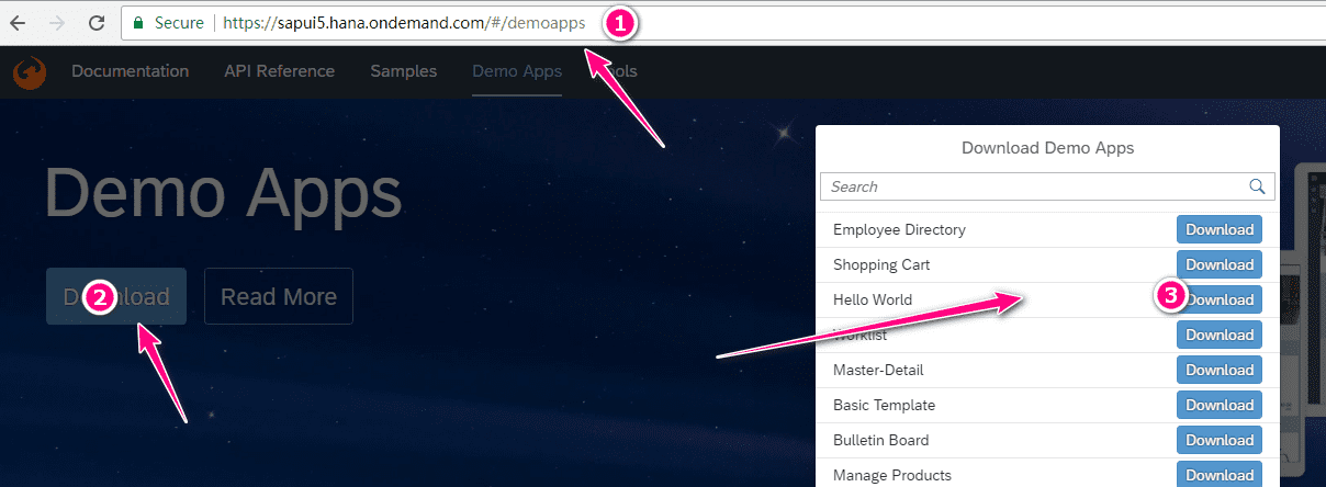 example SAPUI5 project from SAPUI5 demo site by following the below steps: